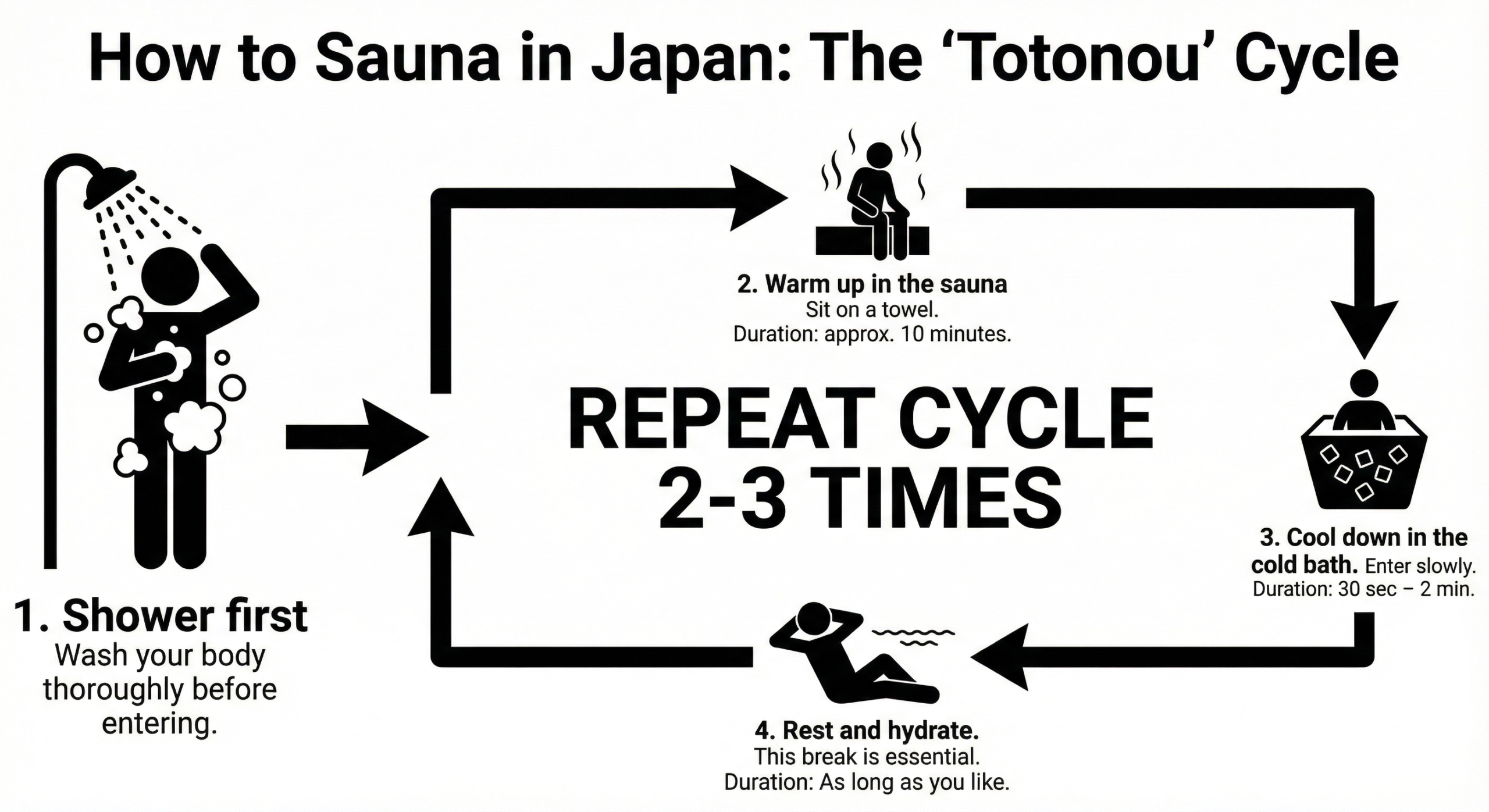 This simple rhythm—heat, cold, rest—is the heart of Japanese sauna culture.